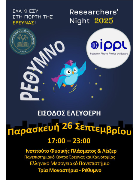 Το Science in the City συμμετέχει στη Βραδιά Ερευνητή που θα πραγματοποιηθεί την Παρασκευή 26 Σεπτεμβρίου στο Ινστιτούτο Φυσικής Πλάσματος και Λέιζερ στα Τρία Μοναστήρια από τις 17:00! Θα είμαστε όλοι/ες εκεί!